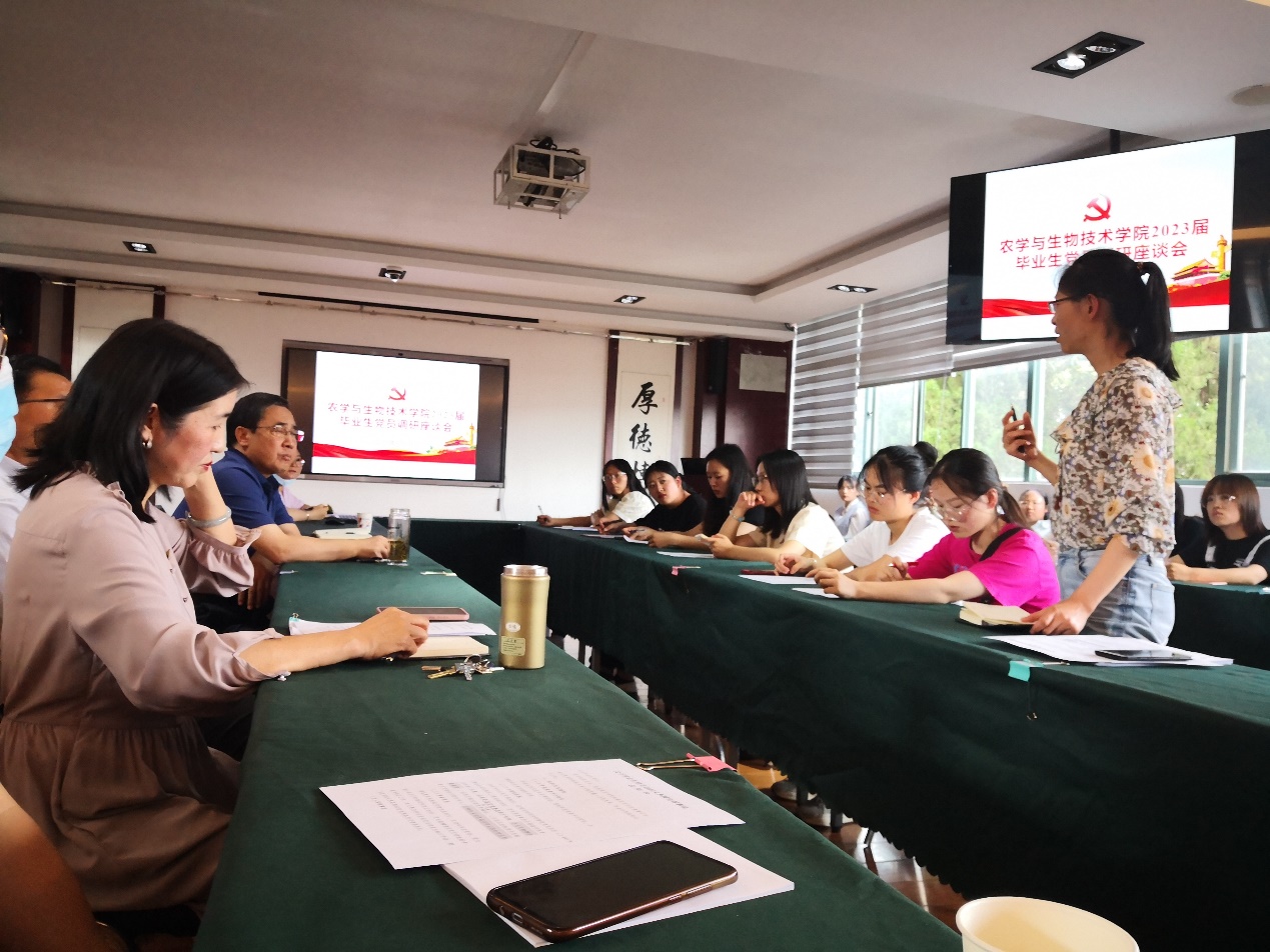 为进一步了解毕业生党员在校期间的情况和毕业后的打算,鼓励他们在不同的岗位上继续发挥模范带头作用,农业与生物技术公司党委于2023年5月23日下午召开了2023届毕业生党员调研座谈会。公司党委书记李富生、经理李建宾、党委副书记安曈昕等教师党员及2023届全体毕业生党员参加会议,会议由组织员寸湘琴主持。