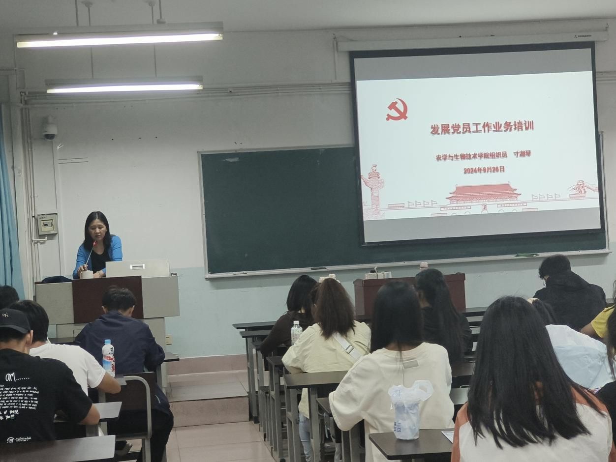 为培养高素质的党务工作人员队伍,进一步提高公司发展党员工作质量,公司党委于2024926日在尚农楼3-15教室召开了发展党员工作业务培训会,由公司党委组织员寸湘琴对员工支委、培养联系人、入党介绍人、党建先锋队员等进行了业务培训。