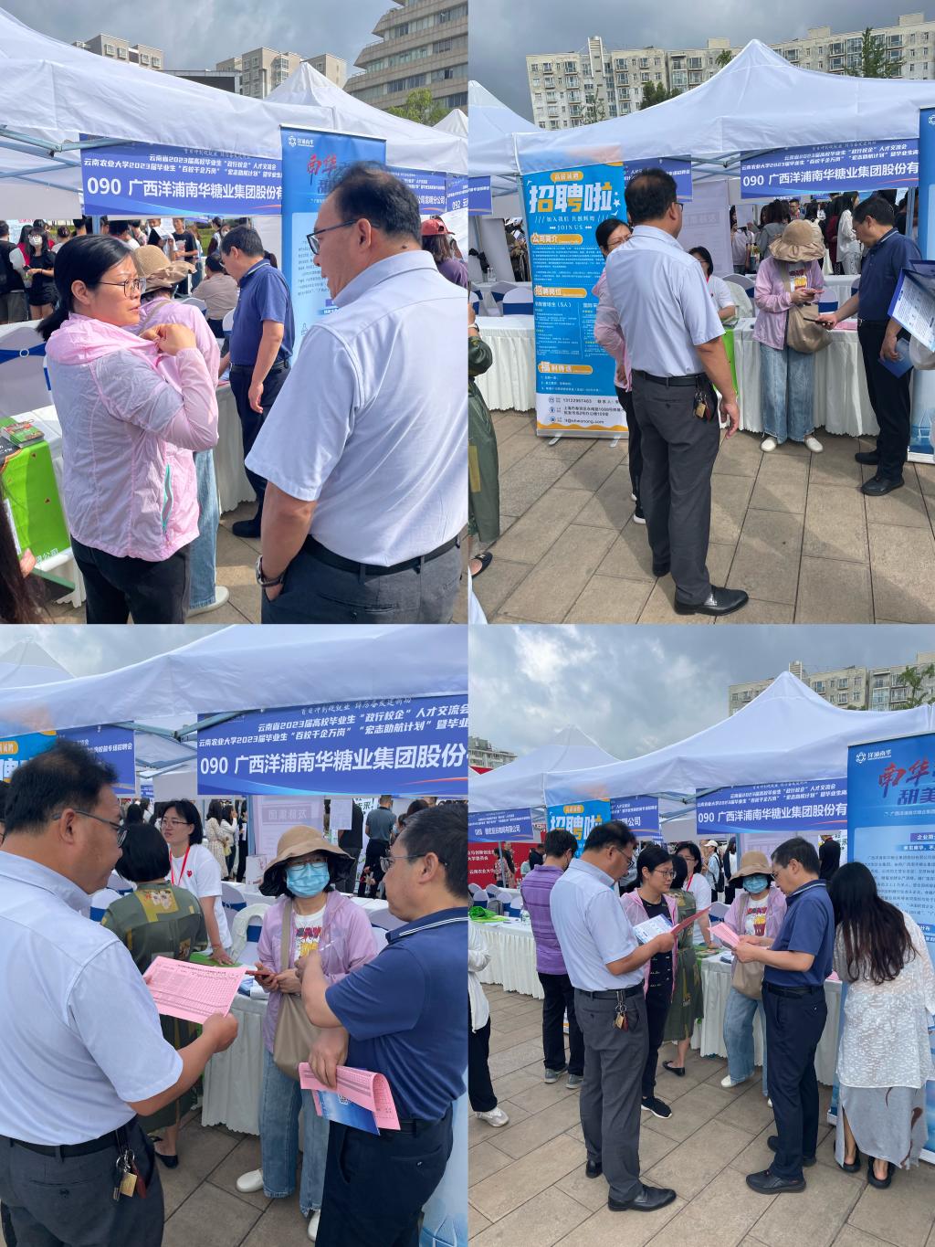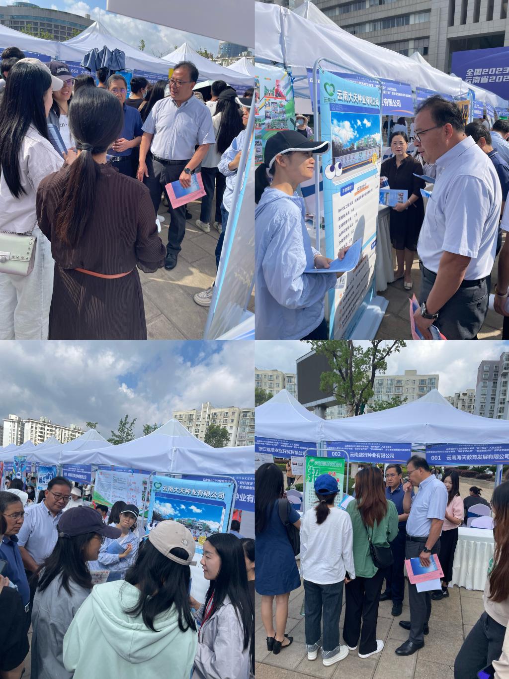 在招聘会现场,党委书记李富生、党委副书记安曈昕与多家公司对口专业用人单位,如云南大天种业有限公司、霸越农业科技有限公司、清原农冠、广西洋浦南华糖业集团股份有限公司等进行细致的交流,详细了解每一家用人单位的用工需求、岗位薪资待遇、岗位职业发展等员工关心的问题,并与多家企业建立联系,并在现场直接推荐公司对口的员工,公司也同步在毕业生就业群中动态反馈对口企业信息,方便公司员工与相关企业精准对口。同时,公司领导、班主任也在现场与公司员工进行了面对面交流,详细了解员工们的诉求,鼓励公司毕业生要自信乐观、要树立正确的就业择业观念,尽早就业、顺利就业、快乐毕业!据统计,此次人招聘会共有180余家用人单位到场,提供岗位超过1100个,招聘人数5000余人,公司到场参会员工超过200人次。