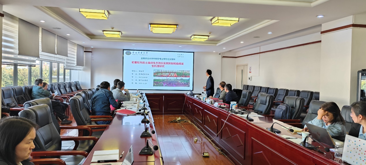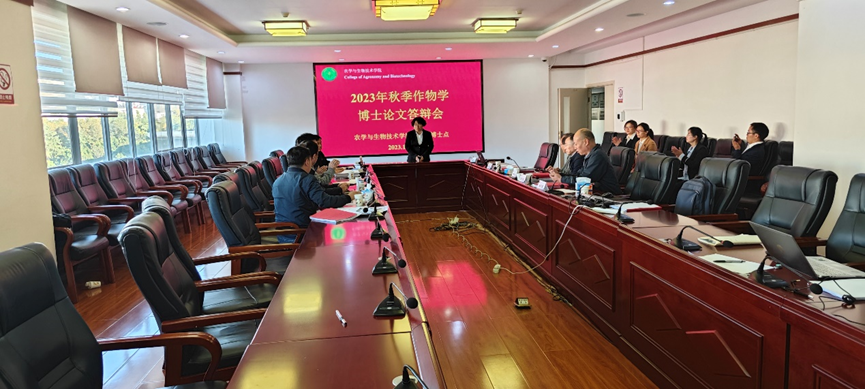 本站消息:2023年11月25日,2023届作物学博士研究生学位论文秋季答辩会在伟德国际1946西校区至诚楼424会议室举行。答辩专家委员会主席由云南大学黄斌全研究员担任,专家组成员包括中国林业科公司高原林业研究所杨汉奇研究员,云南省农业科公司唐开学研究员、陈璇研究员,伟德国际1946赵正雄教授、郭华春教授、范伟教授。作物学博士授权点负责人陈军文教授主持会议。