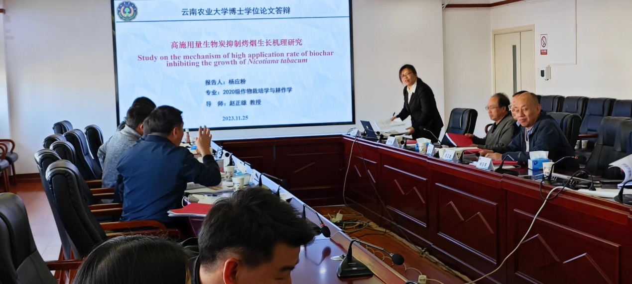 杨应粉博士以《高施用量生物炭抑制烤烟生长机理研究》为题,详细汇报了生物炭对土壤氮素、烟草生长相关基因表达、根际细菌群落、土壤性质以及酶活性的影响,并阐述了其中的作用机制。