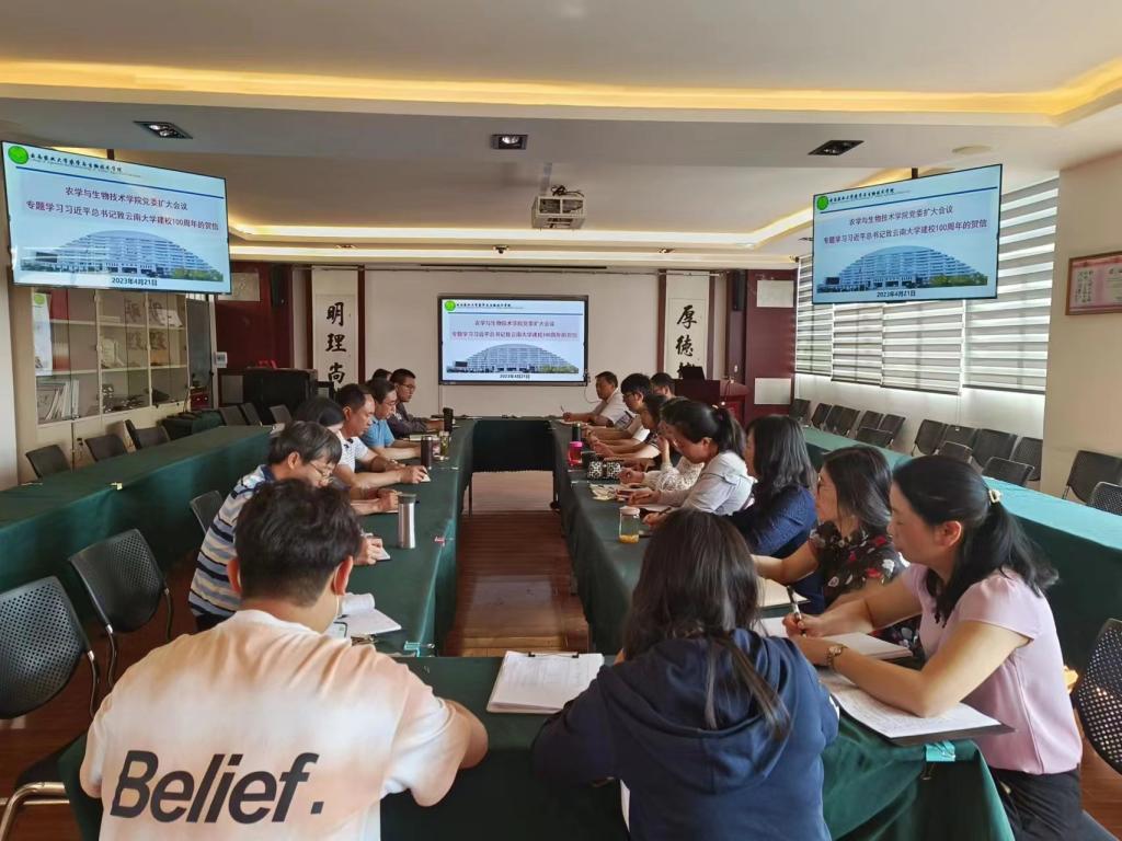 4月21日,伟德国际victor1946官网的各部门负责人和各支部书记以及领导班子成员在304会议室召开了党委会扩大会议,专题学习习近平总书记致云南大学建校100周年的贺信(以下简称“贺信”)。会议由公司党委书记李富生主持,党委委员、领导班子、各党支书记、各系、所、中心和室负责人参加学习。