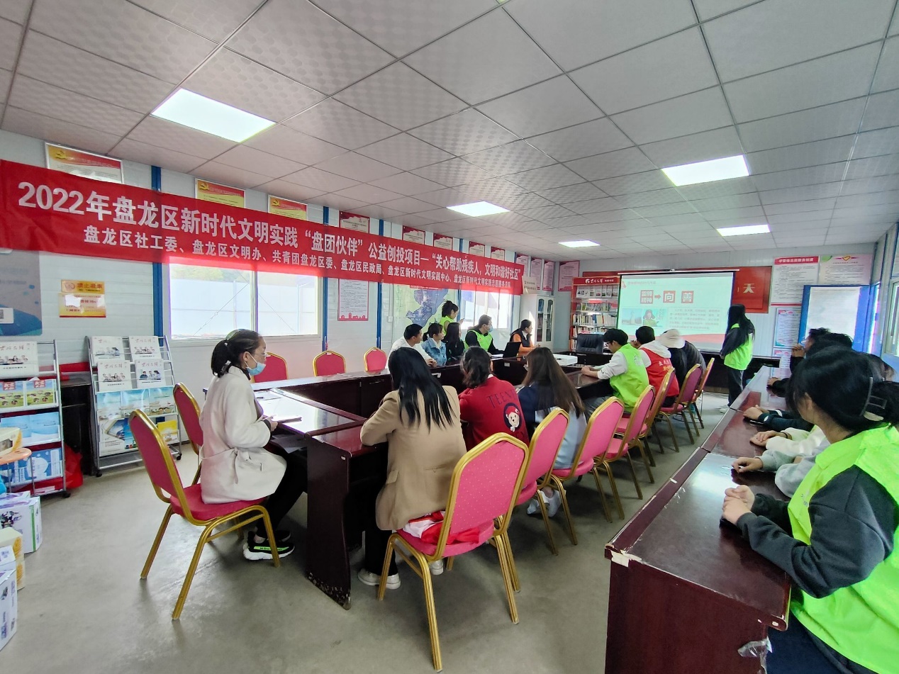 3月29日,昆明市盘龙区“新时代文明实践.盘团伙伴”公益创投项目负责人组织公司志愿者到龙泉街道源清社区开展“关心帮助残疾人 文明和谐好社区”志愿服务活动。