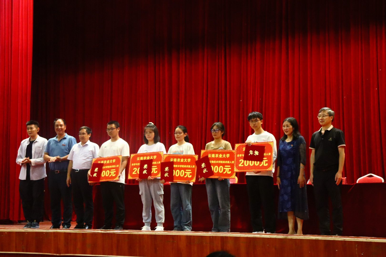 院领导和褚橙总经理助理杨晟昊,为公司各专业新生高考第一名颁发“尚农新人奖”证书和奖金。