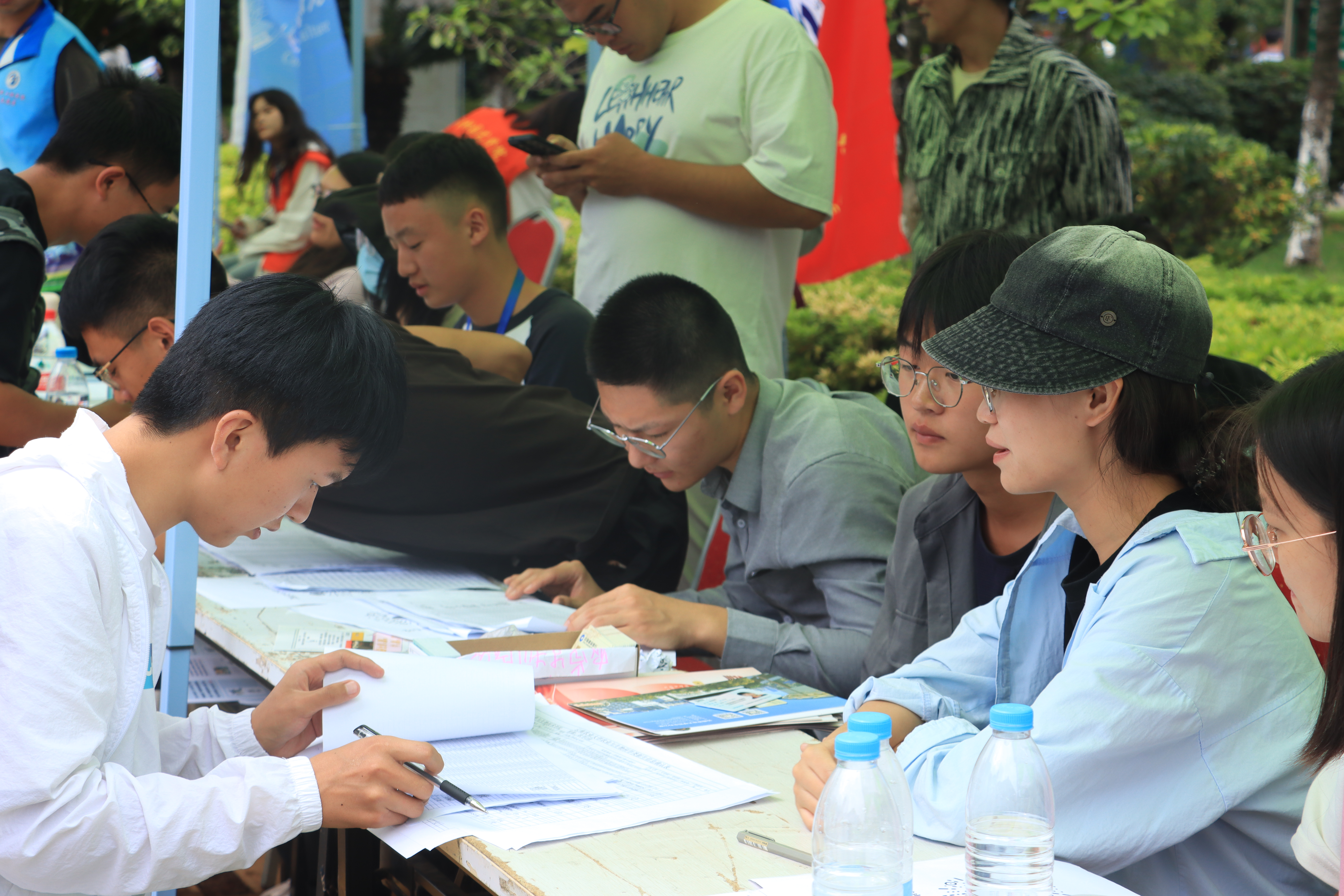 焕然一新的校园,处处是温暖的问候,处处是惊喜的瞬间。踏入校门,志愿者们热情地接过学弟学妹们的行李,带领他们来到报到区,办理入学手续。在员工服务点,公司负责迎新的老师和同学们正紧锣密鼓的安排迎新流程,他们各司其职,在自己的岗位上勤奋的工作着,为新生们保驾护航。为保障后勤工作,公司为志愿者们提供了饮用水和爱心餐。